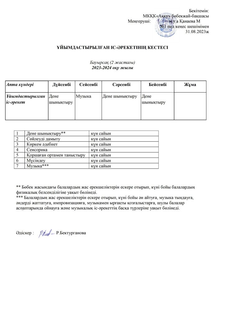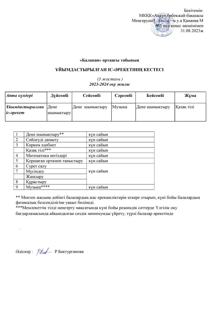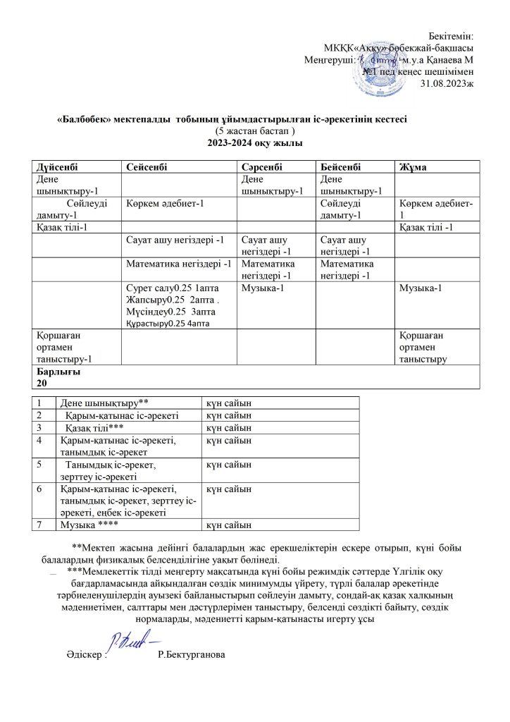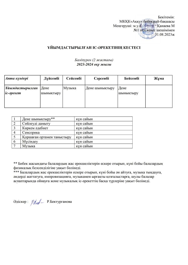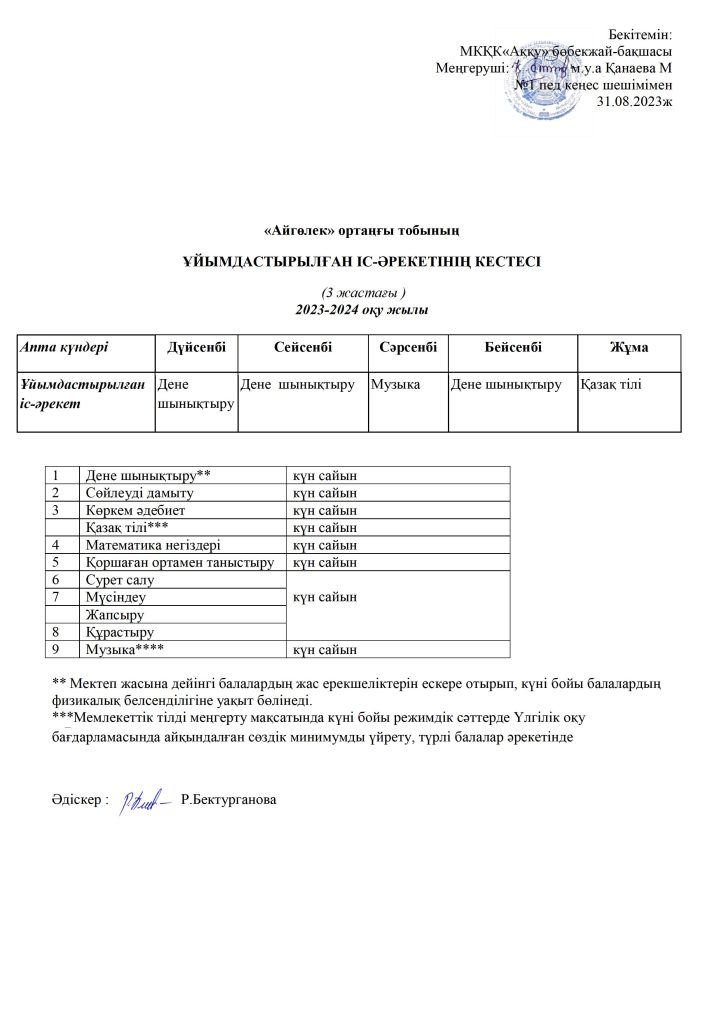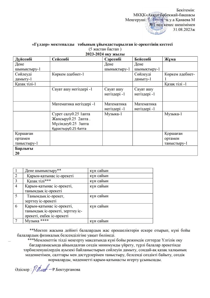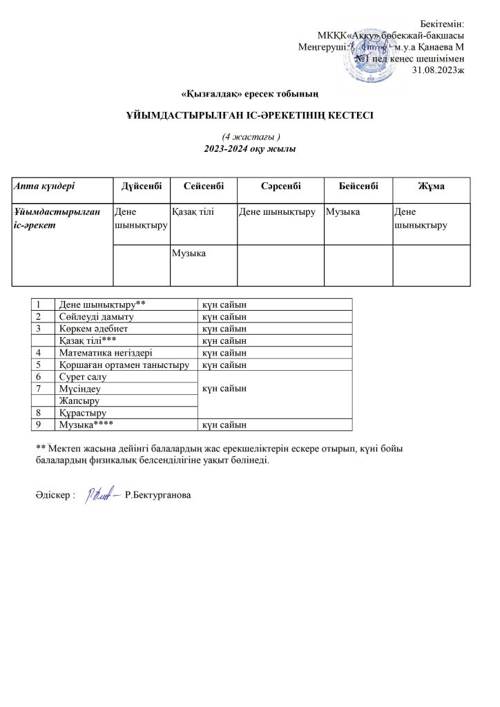 КҮН ТӘРТІБІ, ОҚУ ІС-ӘРЕКЕТ КЕСТЕСІ