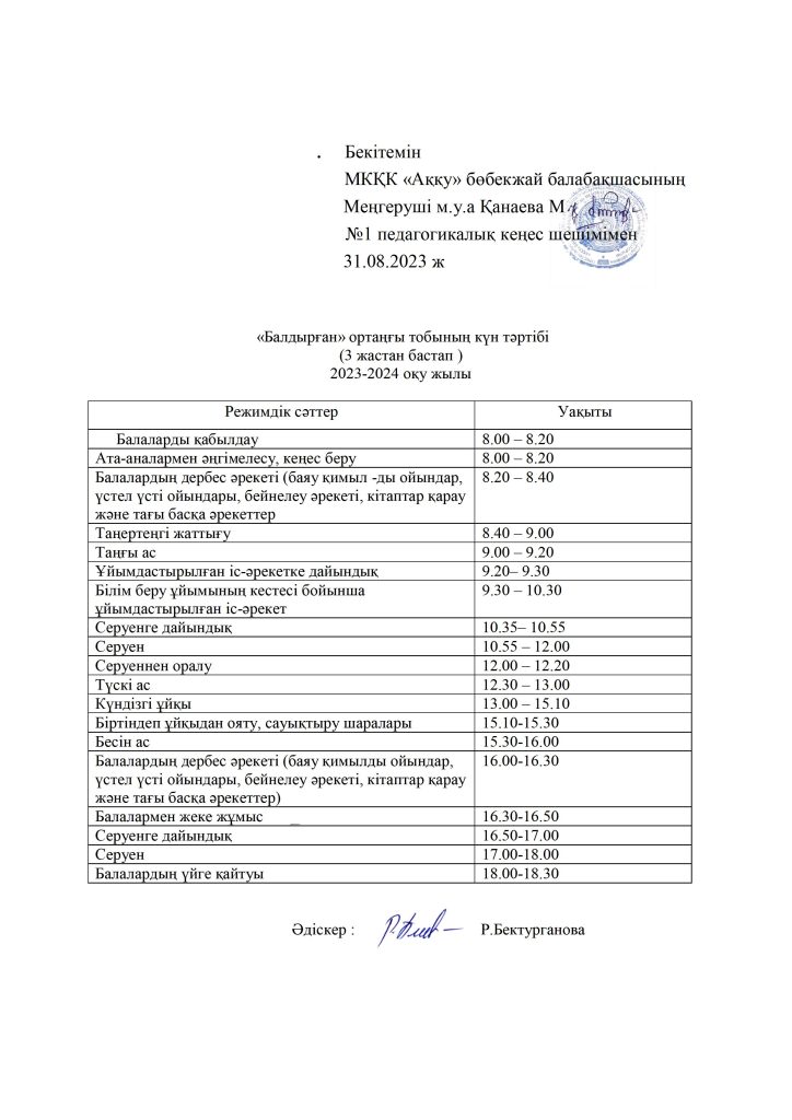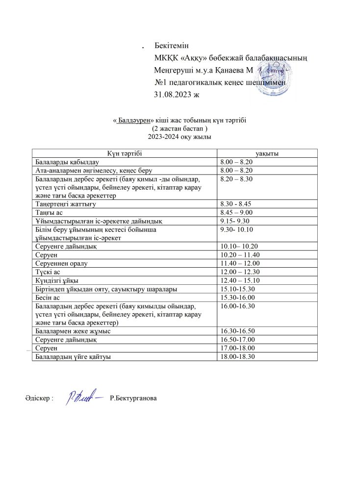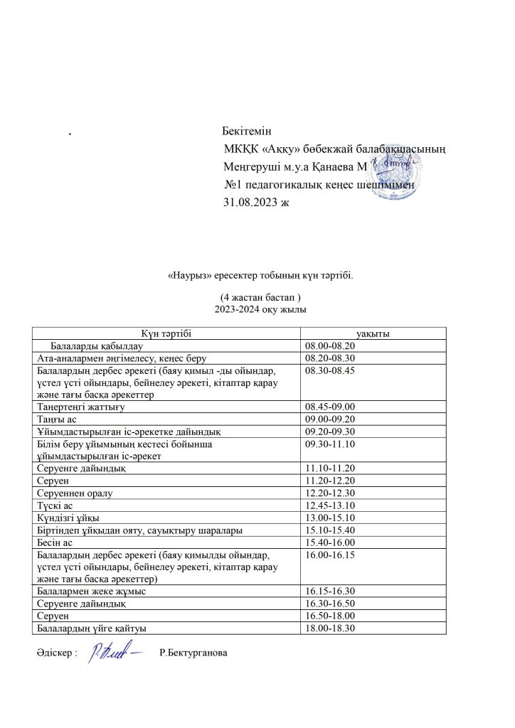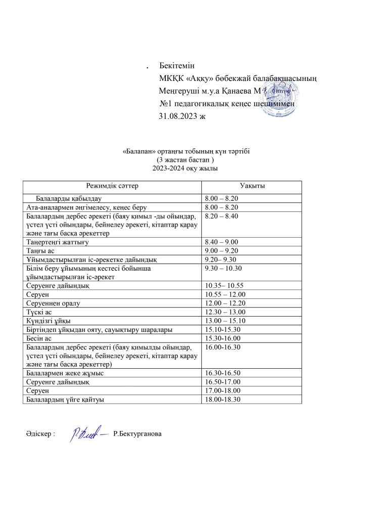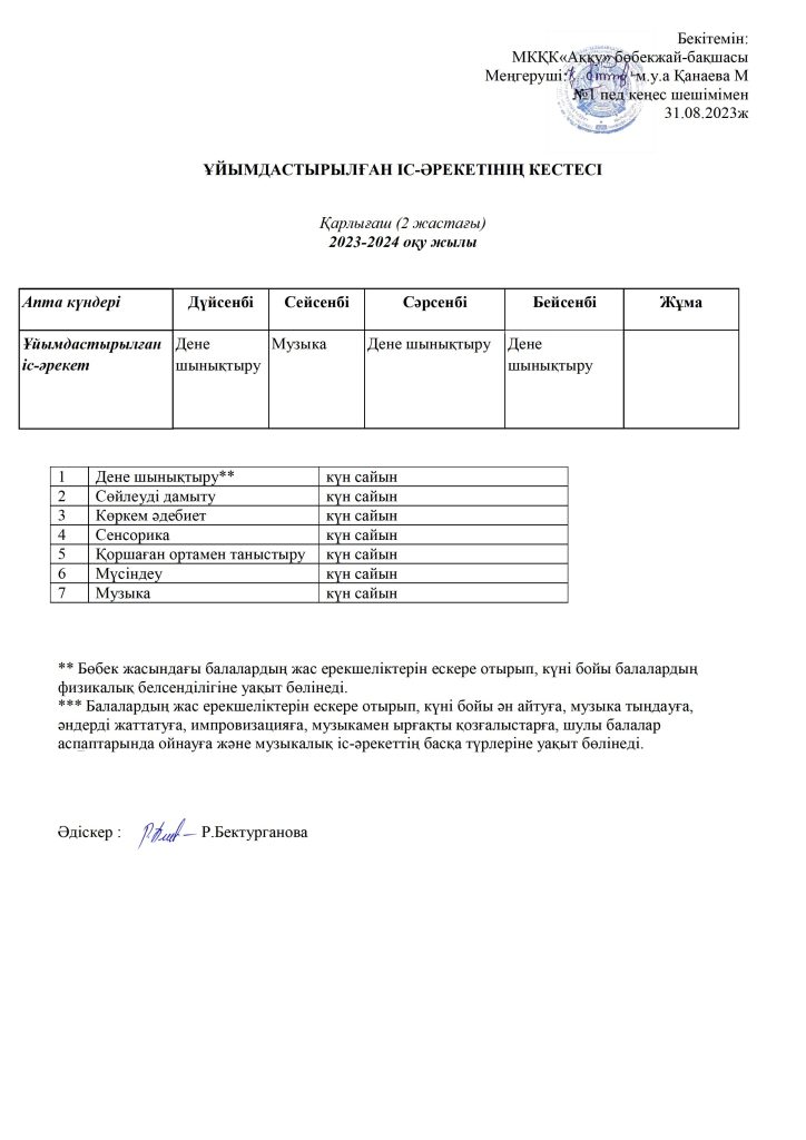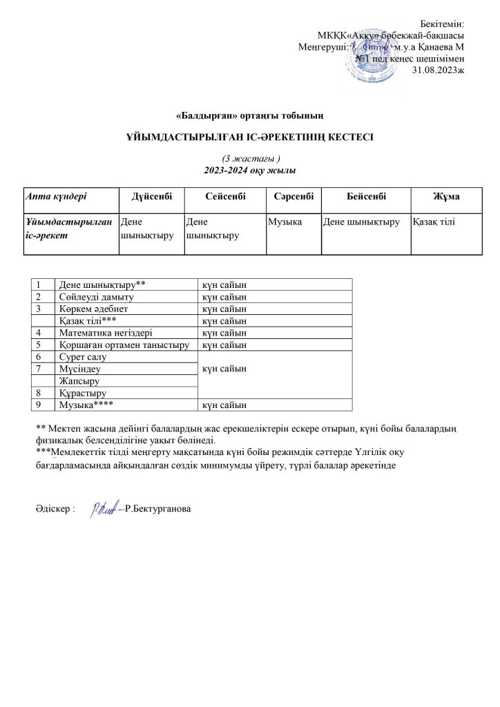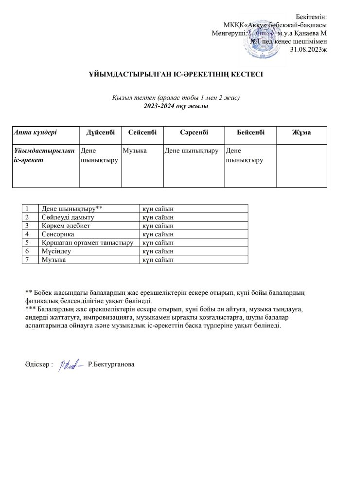 КҮН ТӘРТІБІ, ОҚУ ІС-ӘРЕКЕТ КЕСТЕСІ