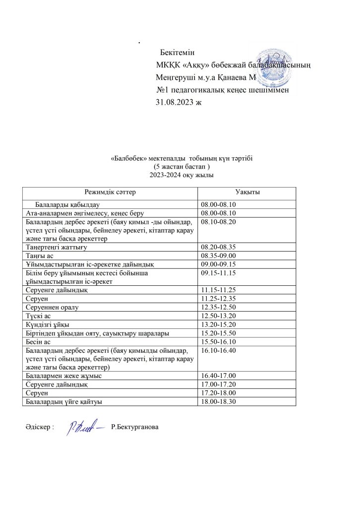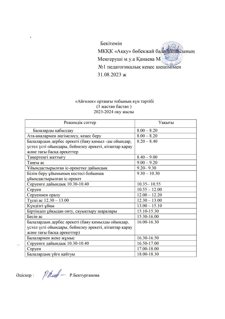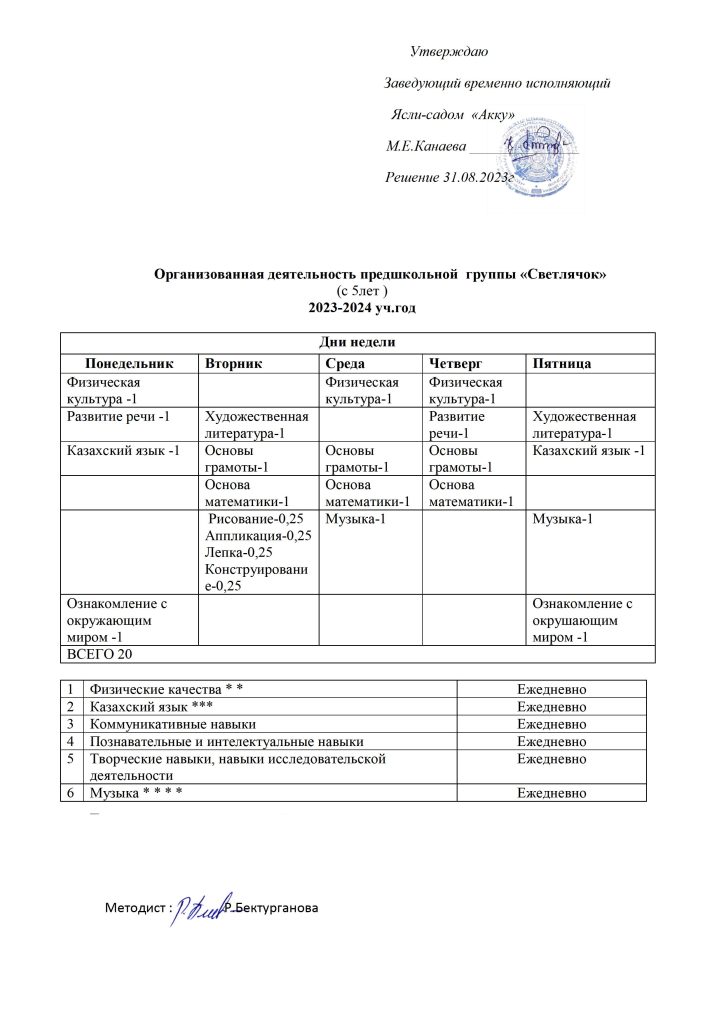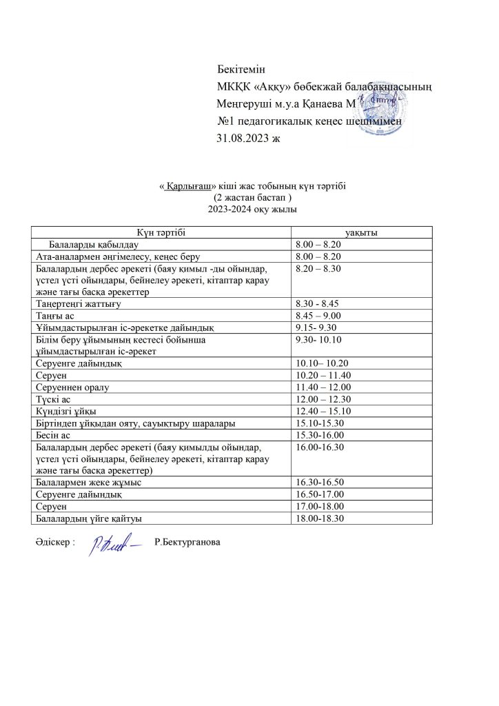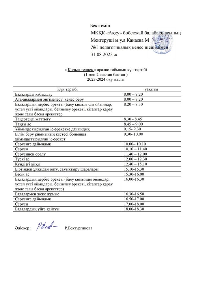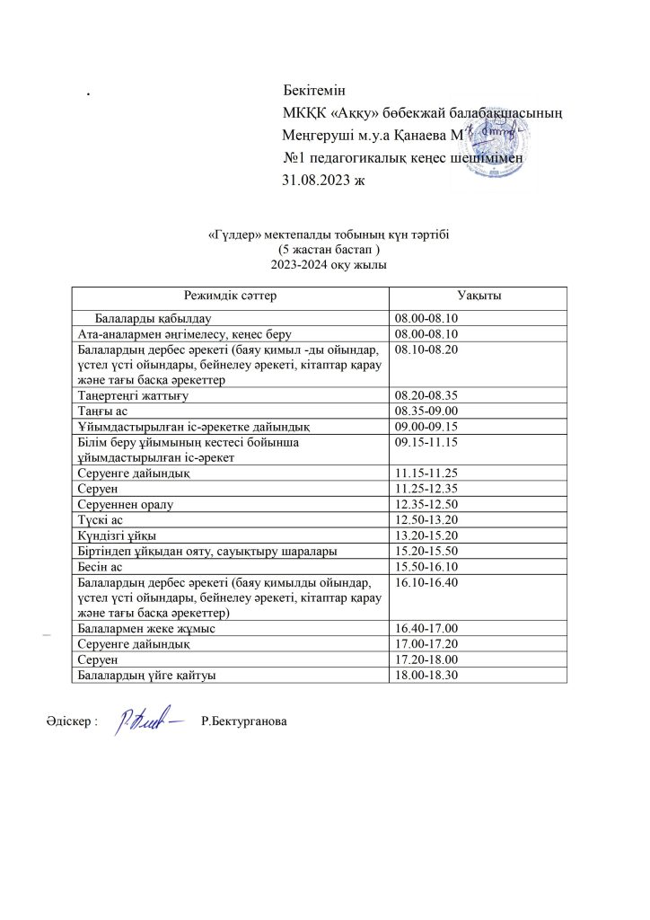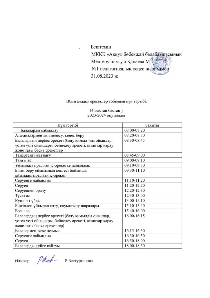 КҮН ТӘРТІБІ, ОҚУ ІС-ӘРЕКЕТ КЕСТЕСІ