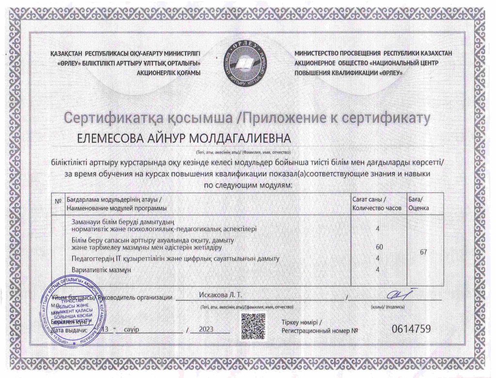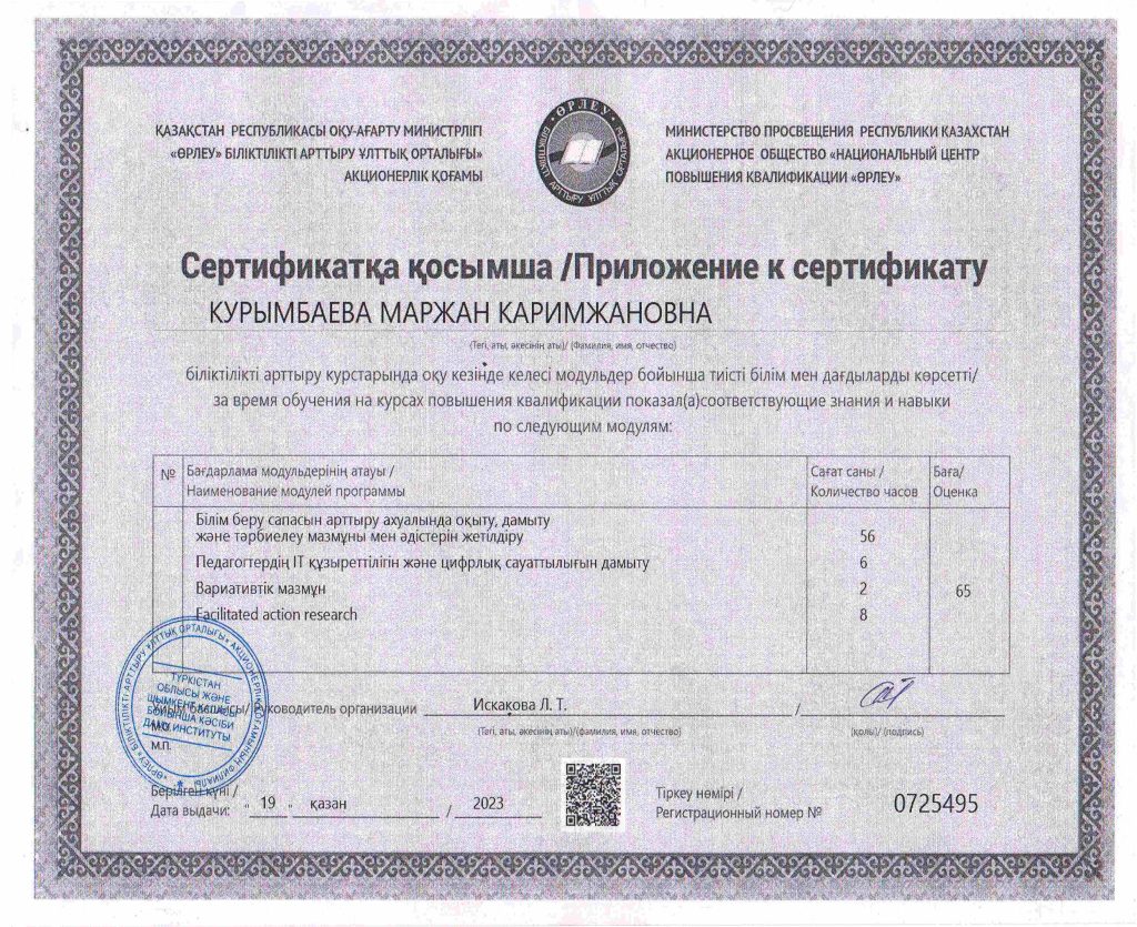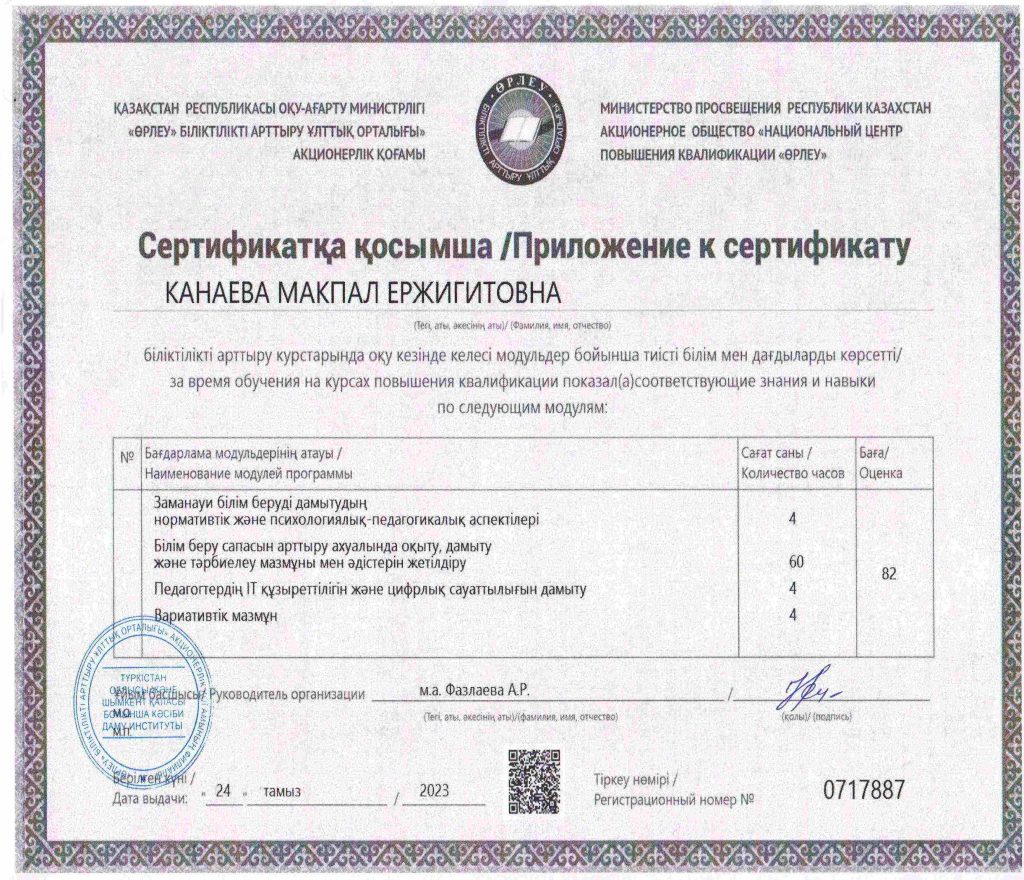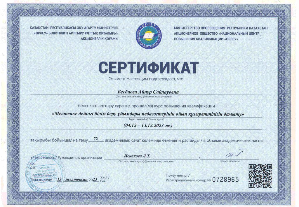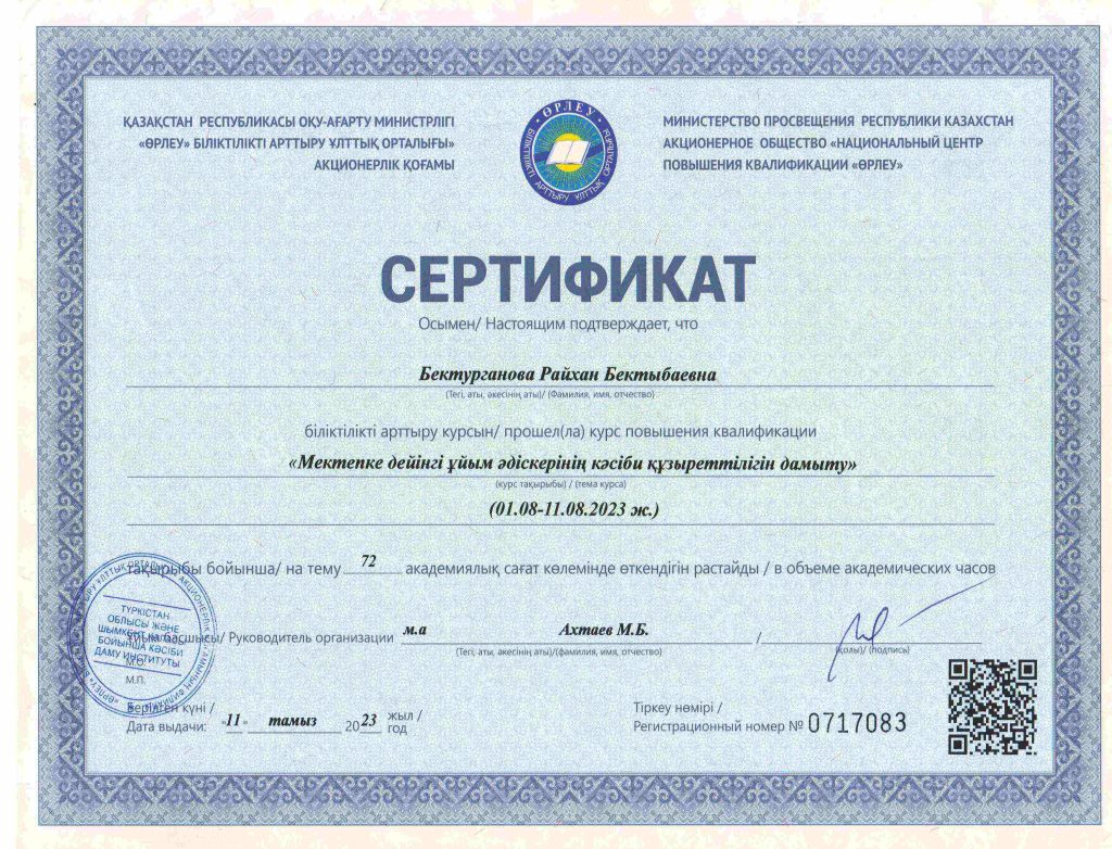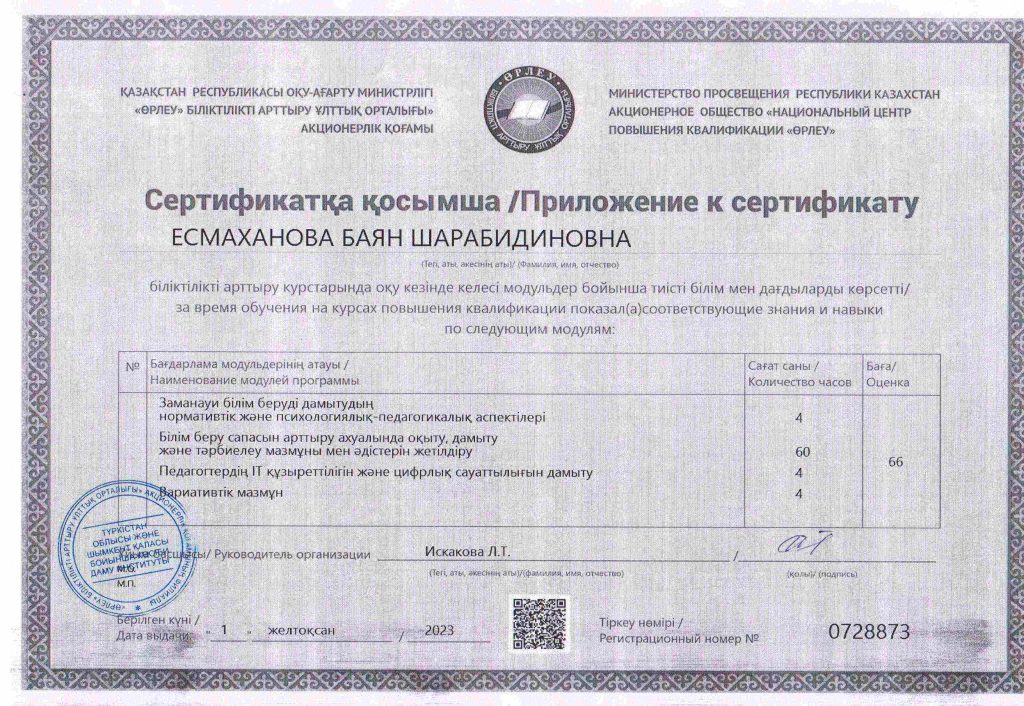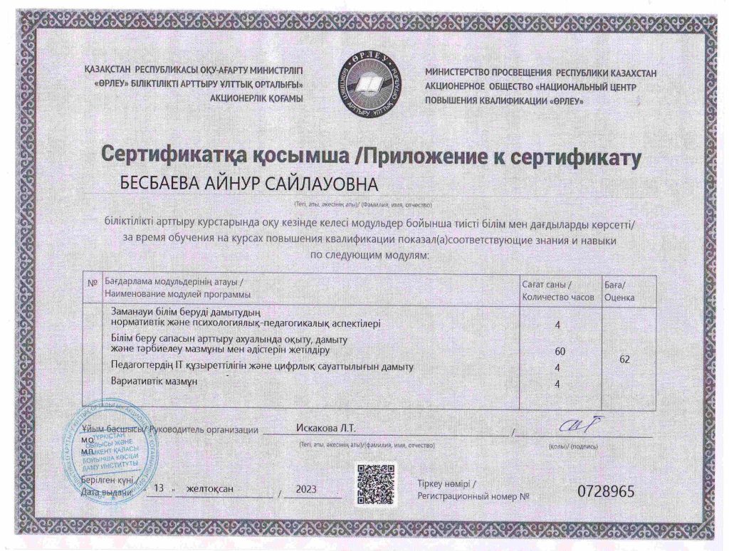 ПЕДАГОГТАРДЫҢ БІЛІКТІЛІК АРТТЫРУЫ