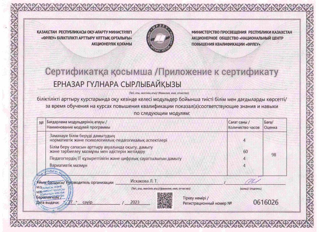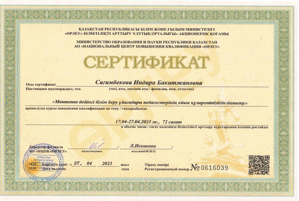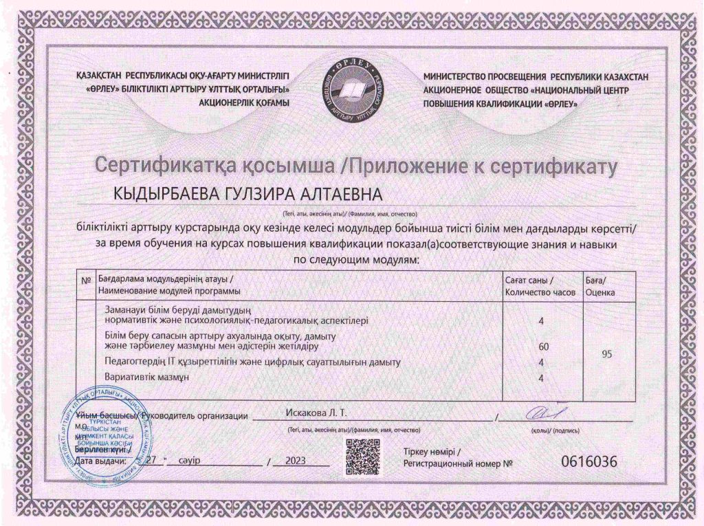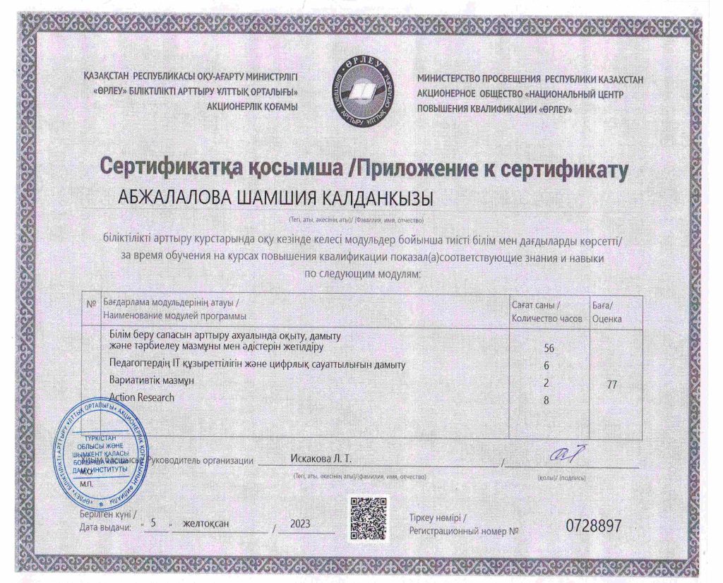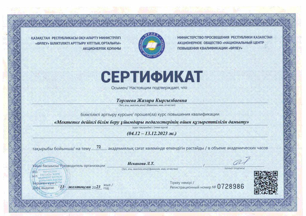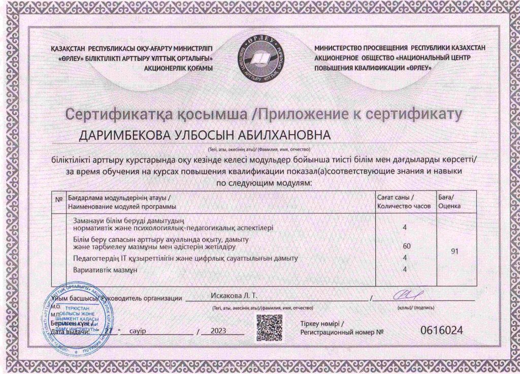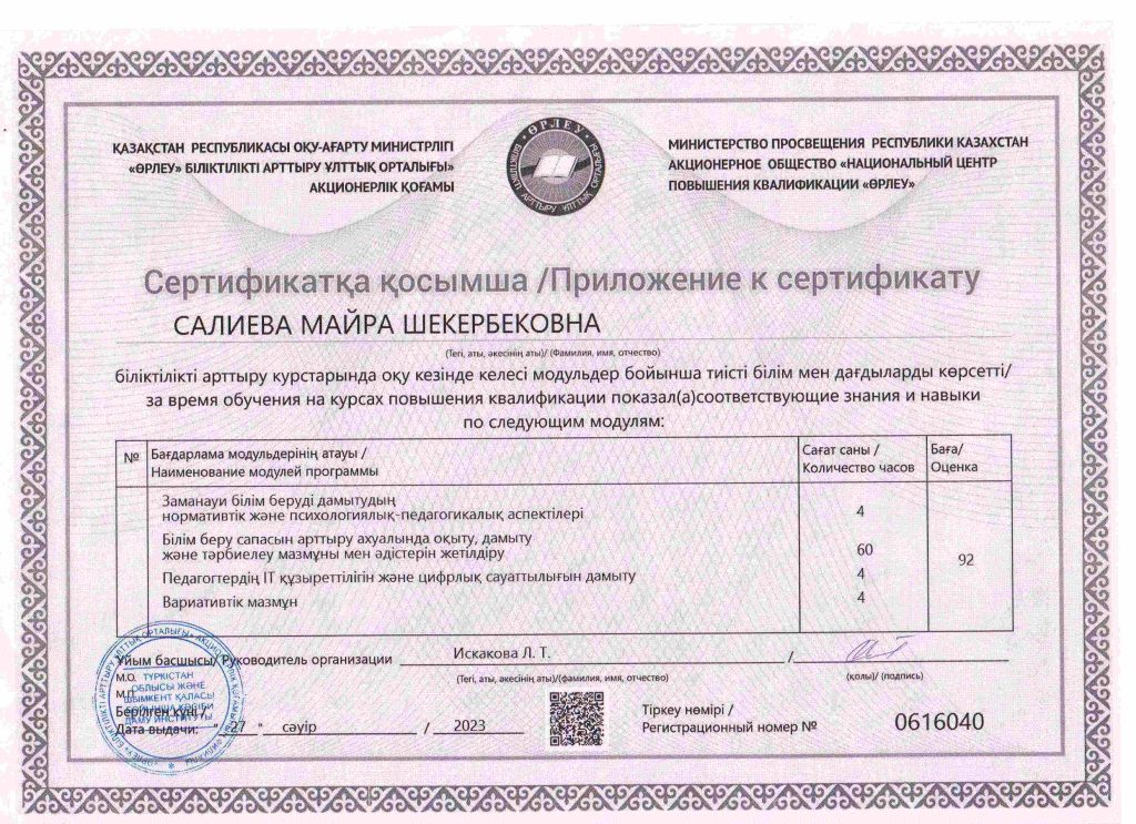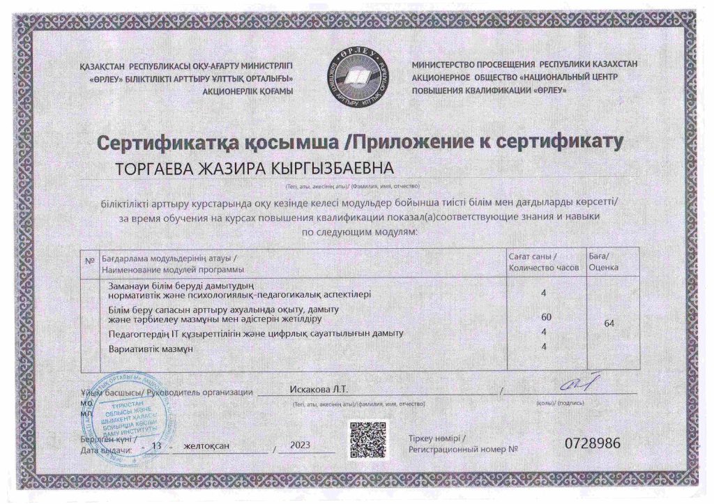 ПЕДАГОГТАРДЫҢ БІЛІКТІЛІК АРТТЫРУЫ
