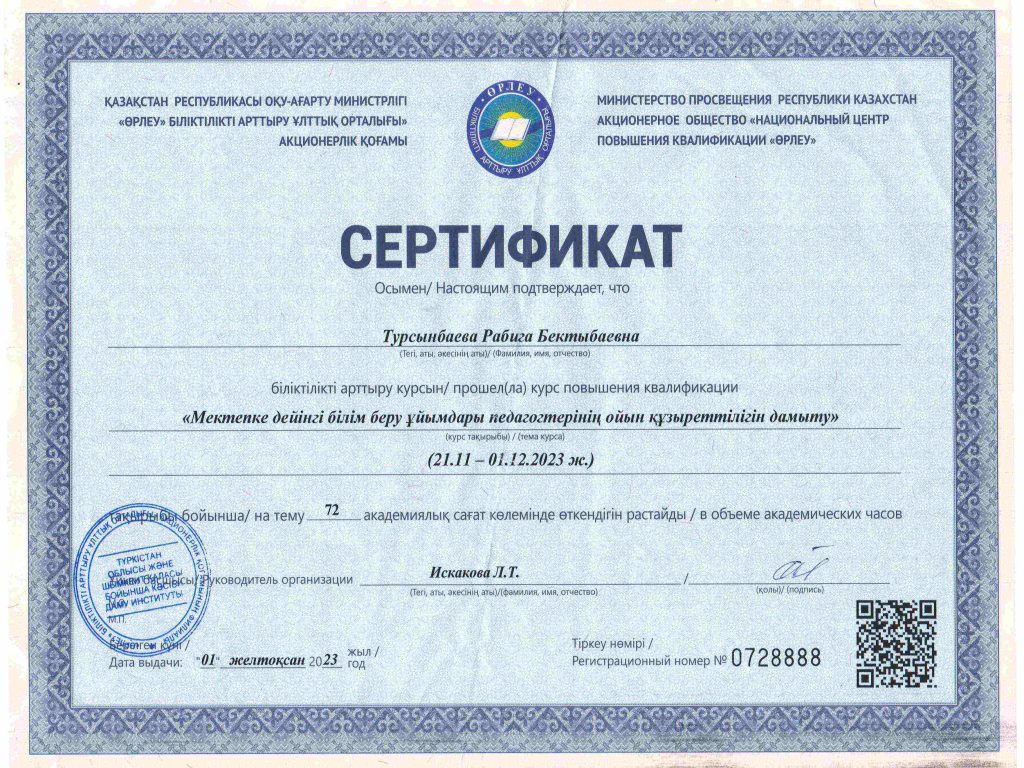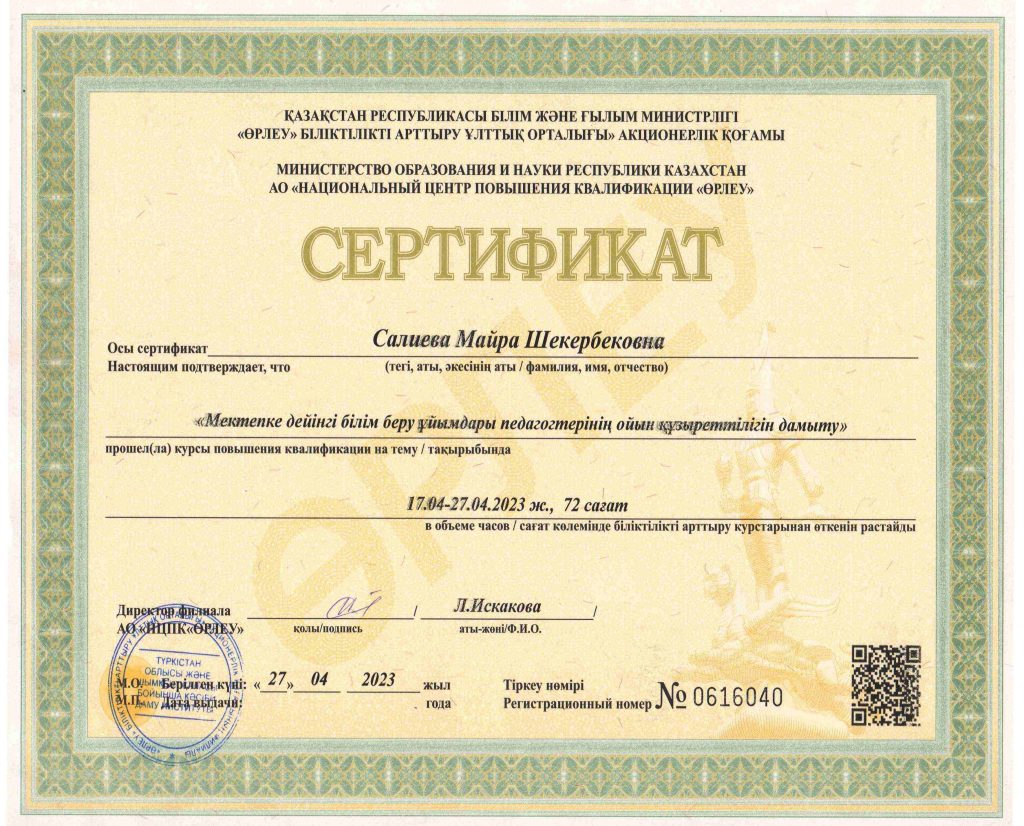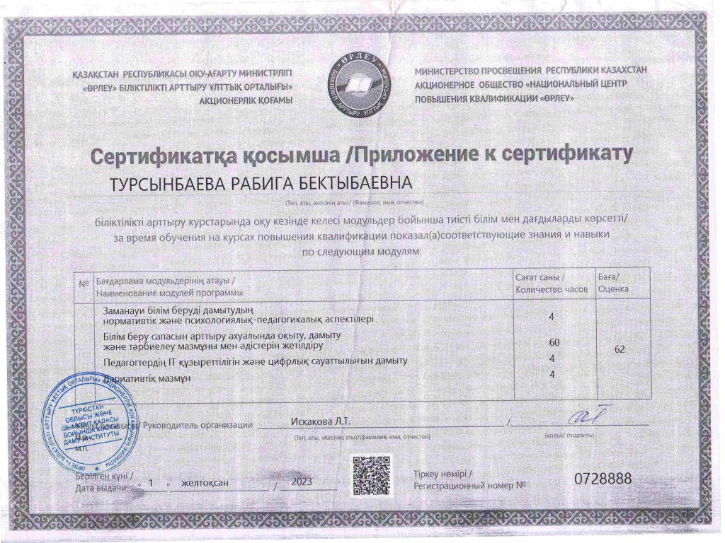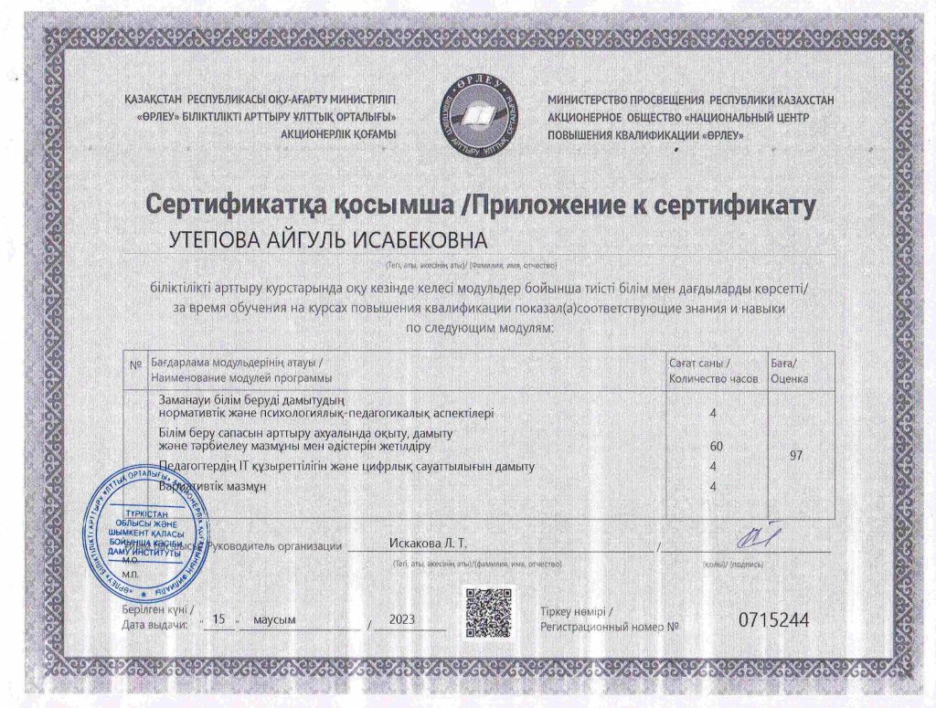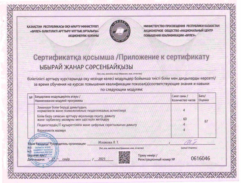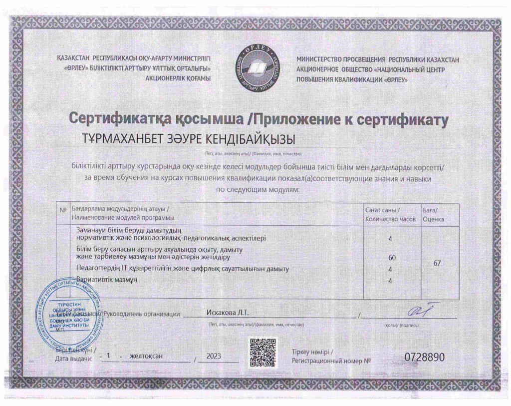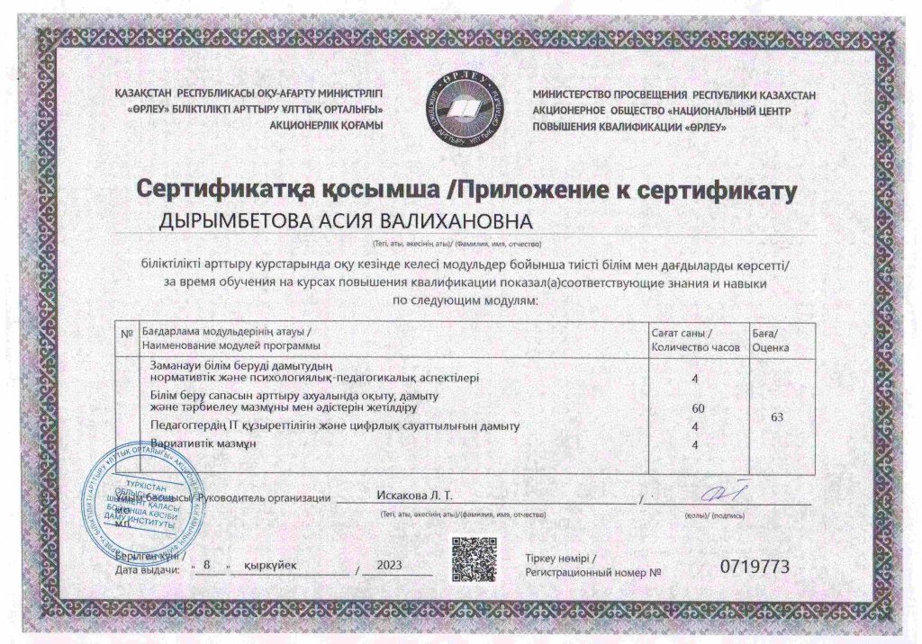 ПЕДАГОГТАРДЫҢ БІЛІКТІЛІК АРТТЫРУЫ