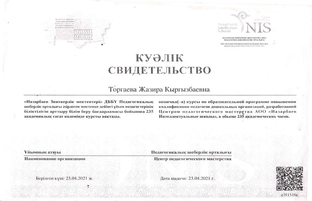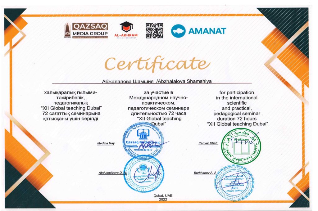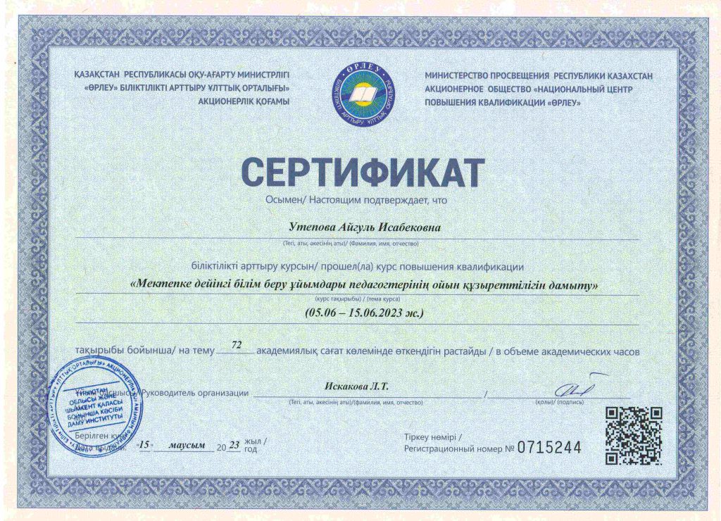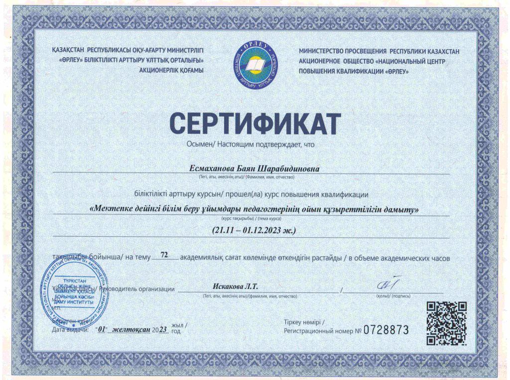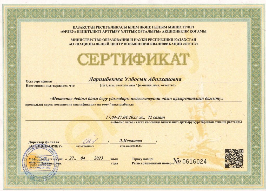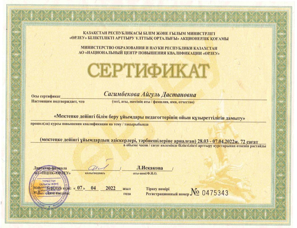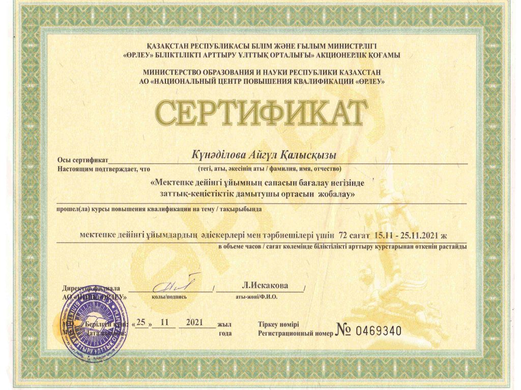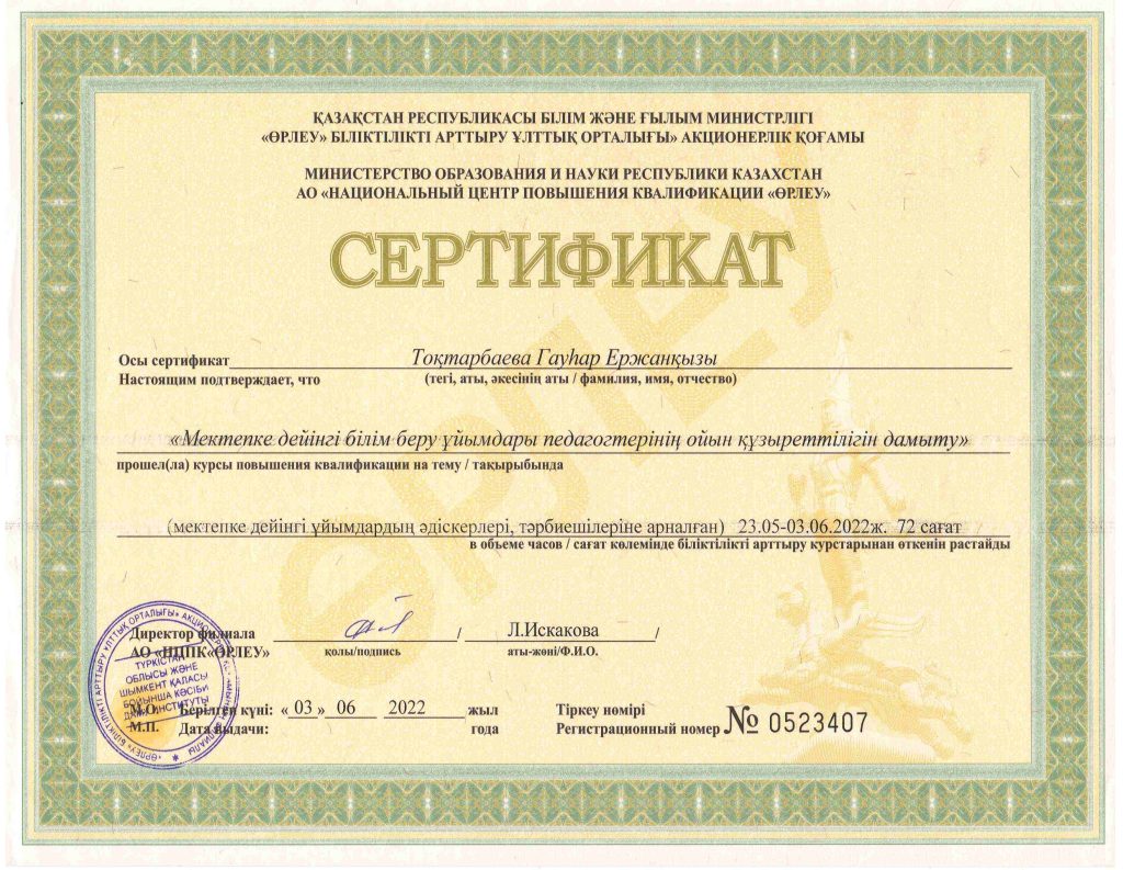 ПЕДАГОГТАРДЫҢ БІЛІКТІЛІК АРТТЫРУЫ