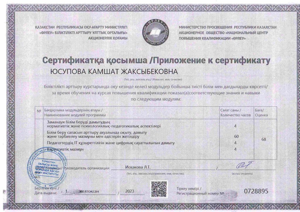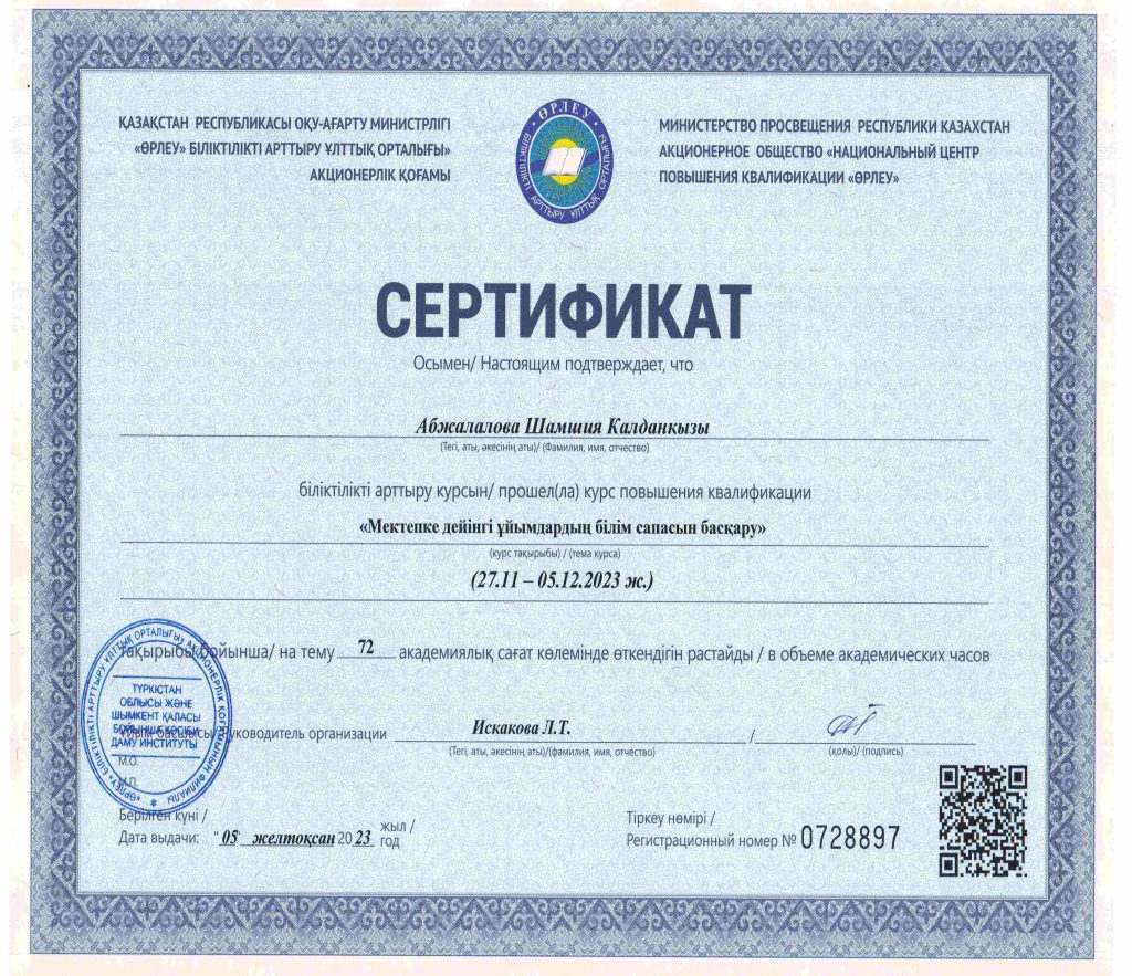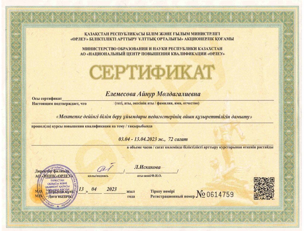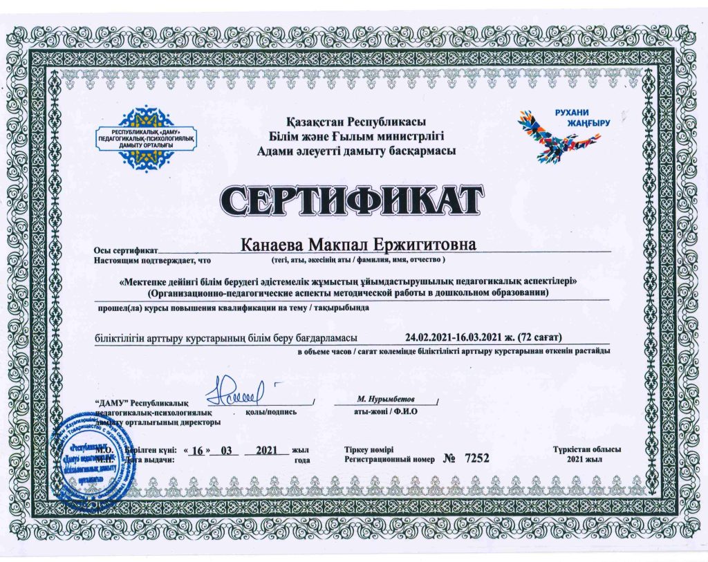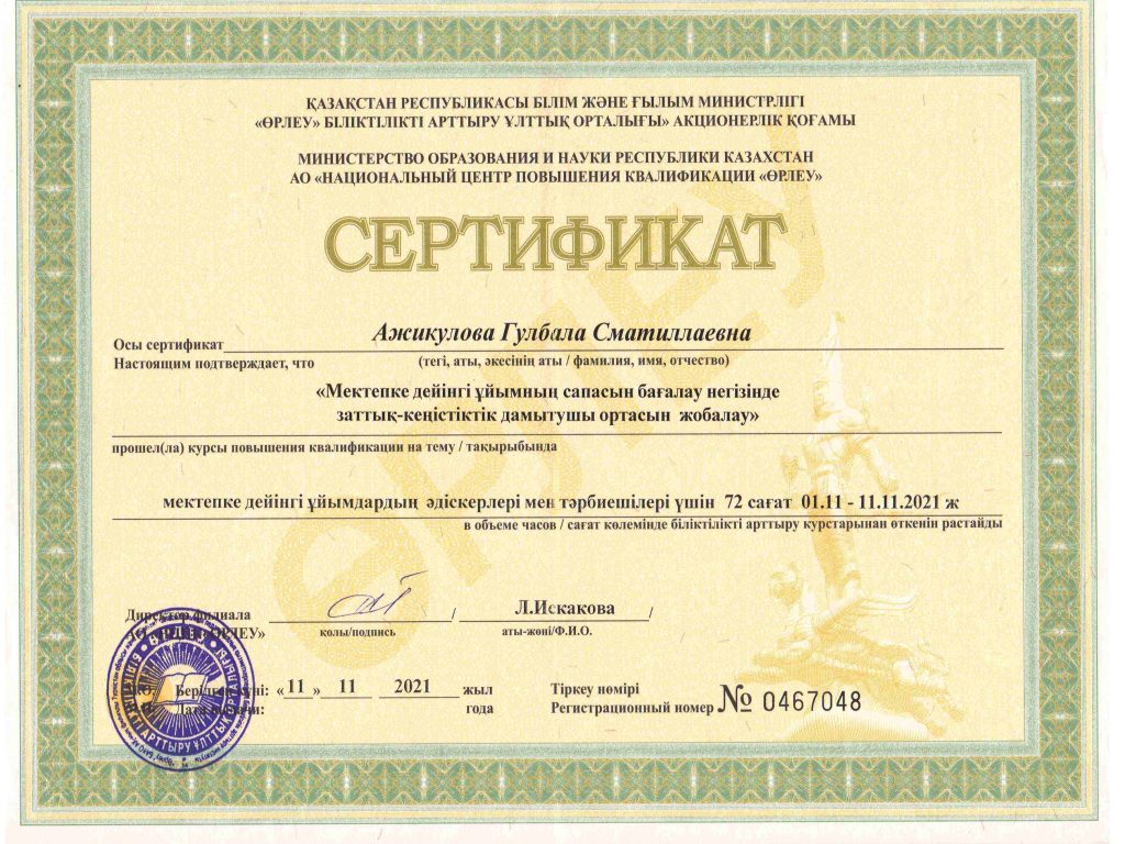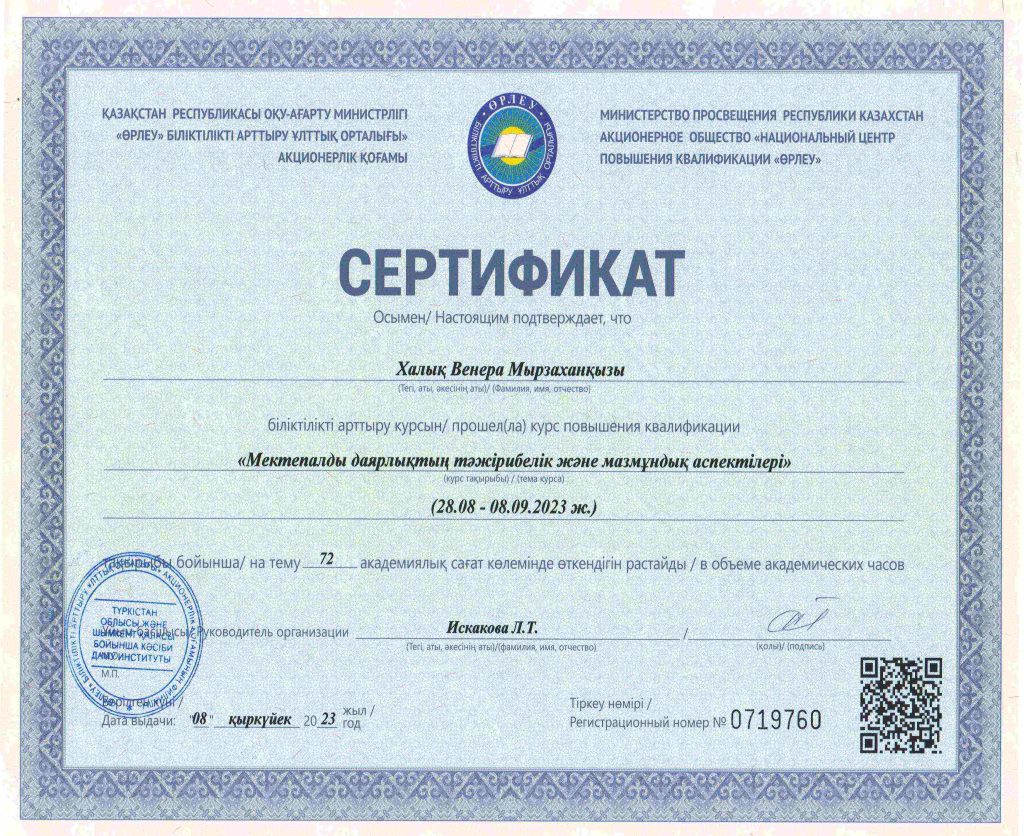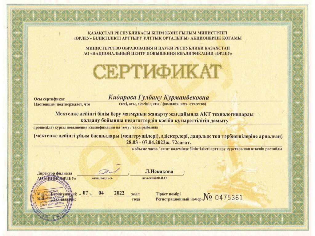 ПЕДАГОГТАРДЫҢ БІЛІКТІЛІК АРТТЫРУЫ