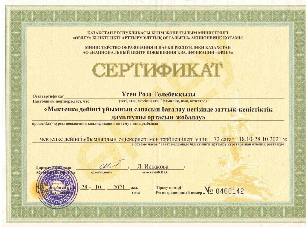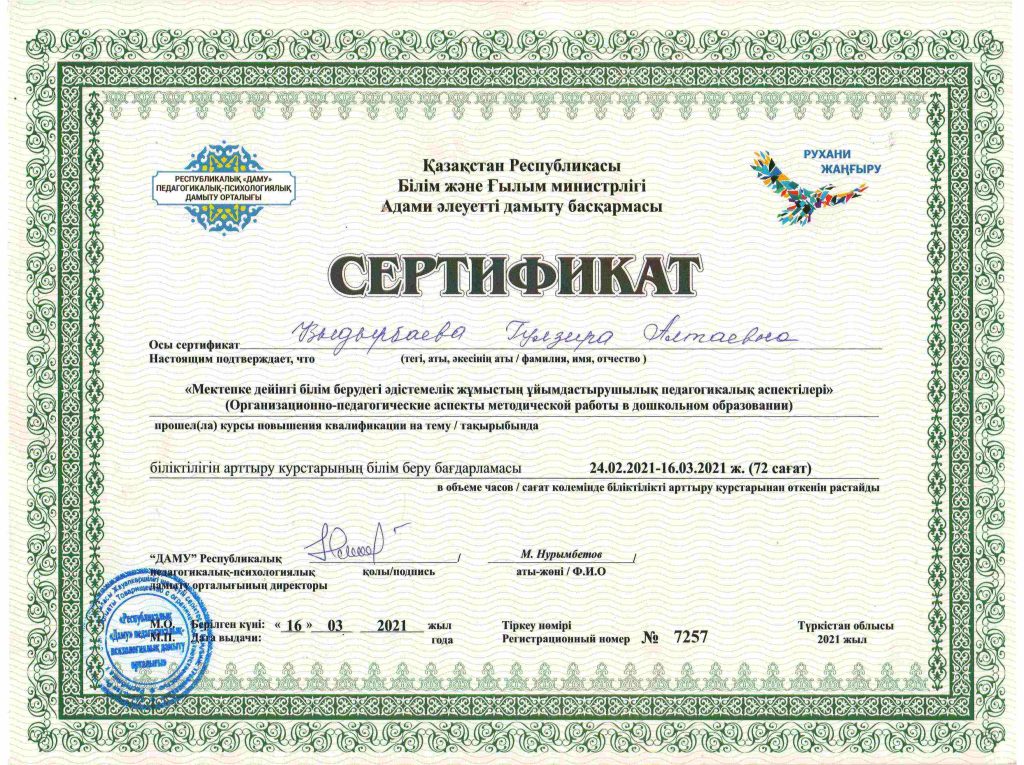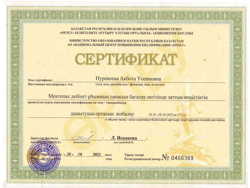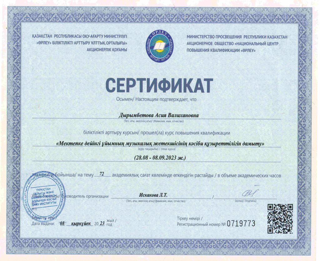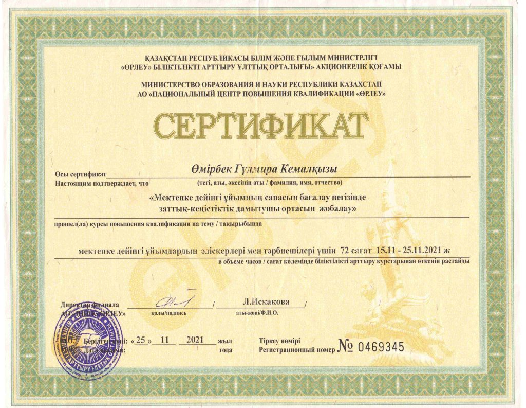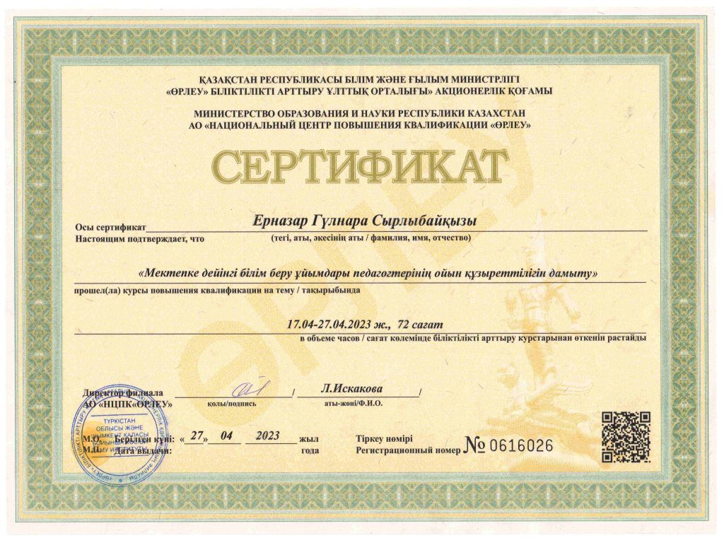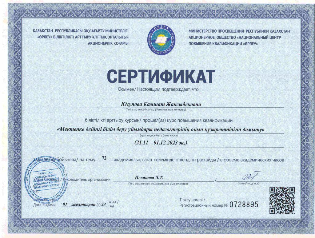 ПЕДАГОГТАРДЫҢ БІЛІКТІЛІК АРТТЫРУЫ